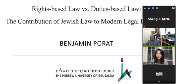 2021年9月29日下午,新丝路乐动在线平台联盟“院长论坛”第二讲成功举办。希伯来大学乐动在线平台副院长Benjamin Porat教授为联盟25所院校师生以及丝绸之路大学联盟的师生带来了题为“Rights-based Law vs Duties-based Law: The Contribution of Jewish Law to Modern Legal Discourse”的线上讲座。讲座由乐动在线平台乐动在线平台助理教授郭剑萍主持。