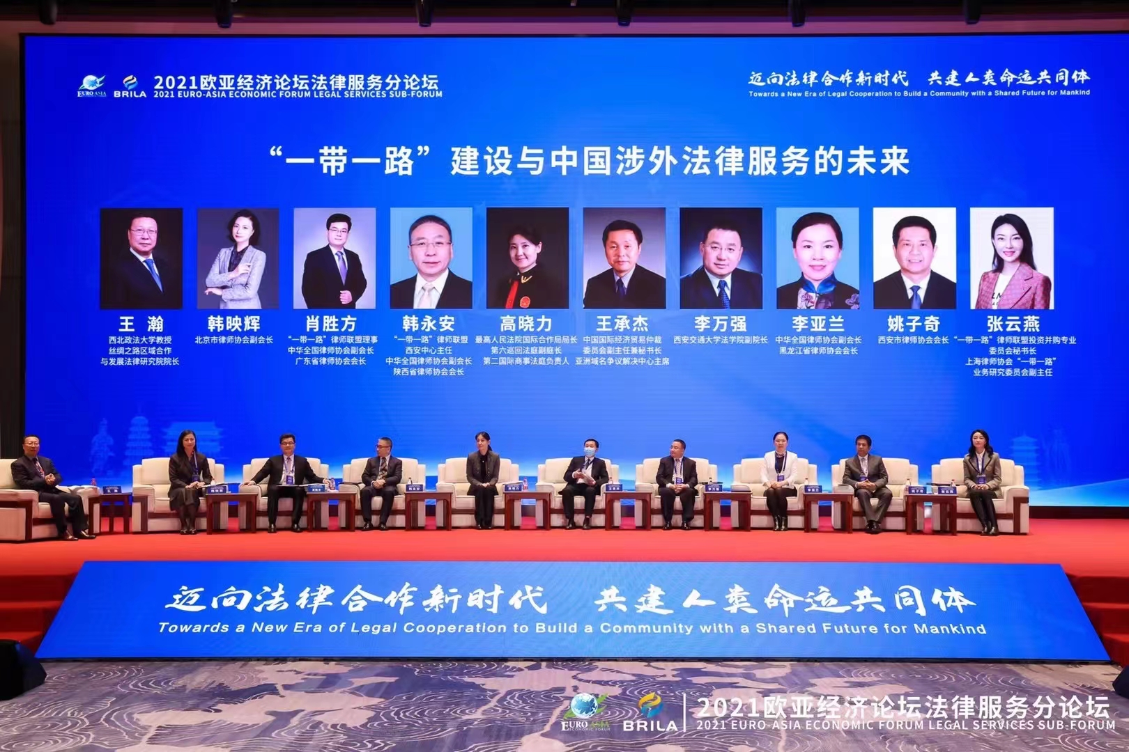 10月18日下午,2021欧亚经济论坛法律服务分论坛在西安举办,“一带一路”律师联盟秘书长康煜先生、最高人民法院国际合作局局长高晓力法官、中国国际经济贸易仲裁委员会副主任王承杰先生、中国国际贸易促进委员会法律事务部部长刘超先生、上海政乐动在线平台校长刘晓红教授等众多知名法律专家、学者和法律业界代表云集古城,围绕“迈向法律合作新时代,共建人类命运共同体”主题,深入交流,凝聚共识,探讨国际法律服务新路径,助力“一带一路”建设。