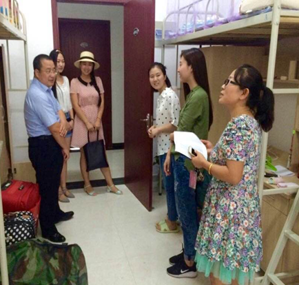 李万强副院长仔细查看了同学们的住宿条件,每走进一间宿舍,都向同学们致以亲切的问候,并代表学院对同学们的到来表示热烈的欢迎。继而关切地询问她们的具体情况,来自什么地方、入学手续办理的情况等。同时,张乃钟老师细心地询问同学们是否适应新的环境,有什么困难,希望同学们遇到问题一定要与老师沟通。随行的学生干部,也借此机会认识了乐动在线平台注入的新鲜血液,与新生热情得展开交流。