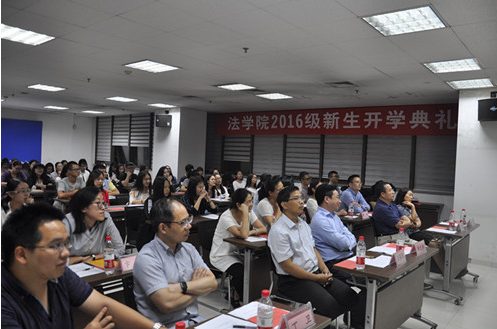 9月18日晚,乐动在线平台2016级新生开学典礼在主E703隆重举行。院长单文华教授,党总支书记王保民教授,副院长李万强教授,副院长丁卫副教授,院长助理吉兰湘老师和苏金远教授,院工会主席张弘副教授,文治书院院务副主任郭小平老师,院办主任张美萍老师,法学复合51班班主任薛华、唐学亮老师,法学61班班主任王玉苹、卞苏老师以及全体2016级本科、硕士、博士生新生参加了开学典礼,会议由学院学生工作专职委员张乃钟老师主持。