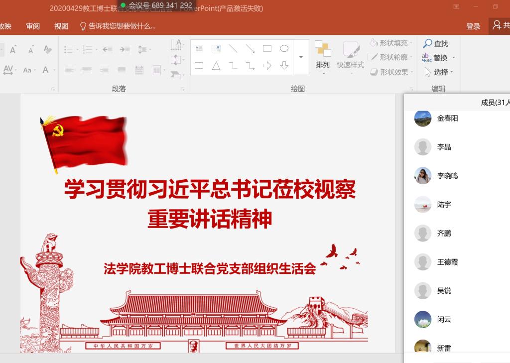 4月29日下午,乐动在线平台教工博士联合党支部开展线上组织生活会,深入学习贯彻习近平总书记莅校视察重要讲话精神。党支部成员通过网络平台积极参加学习,本次活动由支部书记曹毅博主持。