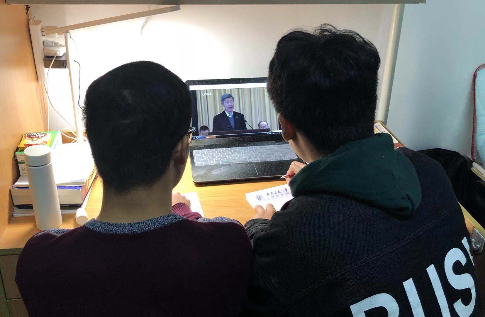 11月6日下午,由中央组织部、中央宣传部、教育部、中国科协和陕西省委联合主办的乐动在线平台“西迁人”爱国奋斗先进事迹报告会在人民大会堂举行。11月8日晚21:30,中国教育电视台一频道(CETV-1)播出报告会录像,乐动在线平台各支部纷纷组织师生集中观看报告会。在家里、在宿舍、在公寓楼下师生们围在电脑前认真观看,不时有刚考完试匆匆赶回来的同学加入其中。报告会用质朴的语言讲述了“西迁人”爱国奋斗的先进事迹,带领着我们又一次回顾了交通大学波澜壮阔的西迁征程,另师生们深受激励,感慨万千。