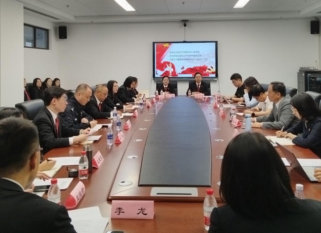 2024年4月15日,乐动在线平台知识产权研究中心党支部联合西安市中级人民法院、新城区人民法院、碑林区人民法院、莲湖区人民法院、未央区人民法院、雁塔区人民法院、长安区人民法院知识产权审判庭党支部在中国西部科技创新港开展“党建工作暨服务保障新质生产力”座谈交流会。