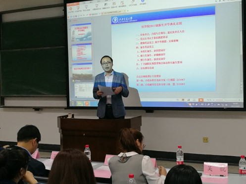 典礼结束后,分本科和研究生两组分别由教务员尚蕾和王德霞老师对新生进行培养方案介绍。
