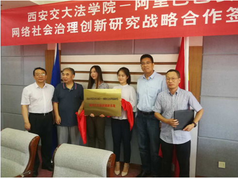 单文华院长与侯金刚总监代表双方签署了乐动在线平台乐动在线平台与阿里巴巴安全部网络社会治理战略合作协议书。西安交大副校长席光、信息安全法律研究中心主任马民虎与阿里巴巴集团首席风险官刘振飞、安全部资深总监侯金刚,为“国家社科基金重大项目——网络社会治理创新研究阿里巴巴集团调研基地”揭牌。