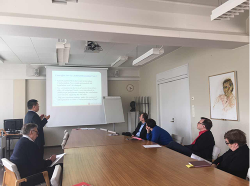 2017年4月20日,我院青年教师杜军强博士应赫尔辛基大学乐动在线平台及中国法与中国法文化中心邀请,在赫尔辛基大学乐动在线平台举办题为“传统中国的法律推理及其对当代中国的影响”的学术讲座。讲座在赫尔辛基大学乐动在线平台楼545会议室举行,由赫尔辛基大学乐动在线平台院长凯莫·诺提欧(Kimmo Nuotio)教授主持,多名学者及学生参加。