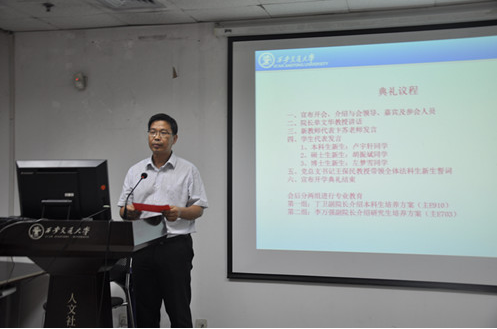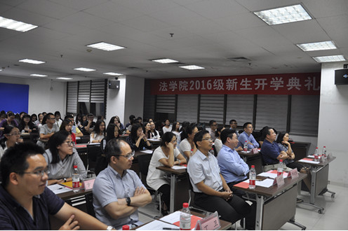 9月18日晚,乐动在线平台2016级新生开学典礼在主E703隆重举行。院长单文华教授,党总支书记王保民教授,副院长李万强教授,副院长丁卫副教授,院长助理吉兰湘老师和苏金远教授,院工会主席张弘副教授,文治书院院务副主任郭小平老师,院办主任张美萍老师,法学复合51班班主任薛华、唐学亮老师,法学61班班主任王玉苹、卞苏老师以及全体2016级本科、硕士、博士生新生参加了开学典礼,会议由学院学生工作专职委员张乃钟老师主持。