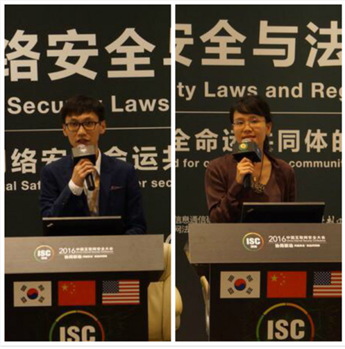 8月16日-18日,第四届中国互联网安全大会(ISC2016)在北京国家会议中心隆重召开。本届大会聚集了全球70多家相关机构和众多专家学者、企业代表,就世界网络安全形势、网络空间战略、安全攻防实战等主题进行了深入探讨。大会以“协同联动:共建安全命运共同体”为主题,设置了多个主题论坛。其中,网络安全与法治论坛备受瞩目,论坛邀请了国家互联网应急中心运行部副主任、正高级工程师严寒冰,法制日报社副社长周秉键,美国前国防部首席网络政策官、美国伯克利大学法学教授Jonathan Reiber,北京邮电大学互联网治理与法律研究中心常务副主任、副教授谢永江,中国信息通信研究院互联网法律研究中心主任李海英,韩国最高检大网络检查侦查官、网络安全法专家Chu Pill Hwan,乐动在线平台信息安全法律研究中心主任、教授、陕西法学会信息安全法学研究会会长、中国网络安全协会副理事长马民虎,公安部第三研究所网络安全法律研究中心主任、副研究员黄道丽,乐动在线平台信息安全法律研究中心博士马宁等国内外十余位顶级网络安全法领域专家就“网络安全命运共同体的法律保障”这一主题进行了广泛的研讨和交流。
