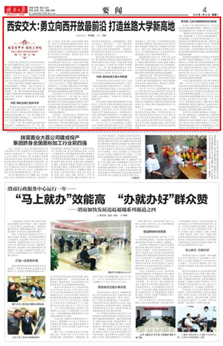 【编者按】1月18日,陕西日报要闻版头条刊发“西安交大:勇立向西开放最前沿打造丝路大学新高地”双甲子校庆系列深度报道,展示了西安交大扎根西部,融入国家“一带一路”战略发展,以国际化视野向西、向西、再向西,迈出了向西开放、开拓创新的新步伐,现全文转载如下: