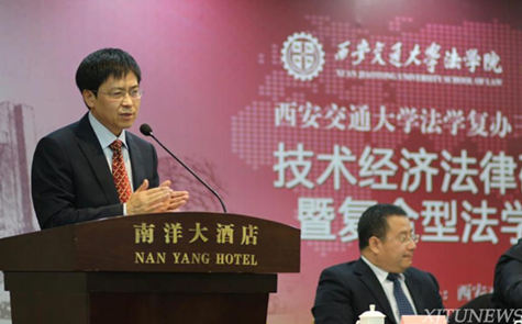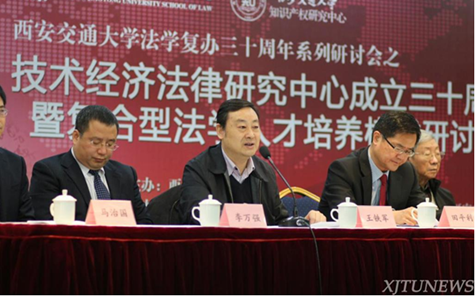 研讨会于28日上午在南洋大酒店开幕。中国工程院院士汪应洛、陕西省委政法委副书记、综治办主任王永明、陕西省高级人民法院副院长田平利、陕西省知识产权局局长巨拴科、西安交大副校长王铁军、陕西省人大教科文卫委员会办公室主任赵建军、西安市法学会专职副会长黄必方、西安交大乐动在线平台副院长李万强等科技法学、知识产权法学界著名专家学者以及相关校友等一百五十余人出席了开幕式。开幕式由西安交大技术经济法律研究中心、知识产权研究中心主任马治国主持。