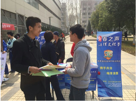 3月15日,乐动在线平台研究生分会与校工会、碑林区消费者协会、碑林区工商局联袂在康桥苑西广场、梧桐苑门口以及东二楼彩虹桥下举办了以“携手共治,畅想消费”为主题的普法宣传咨询活动。