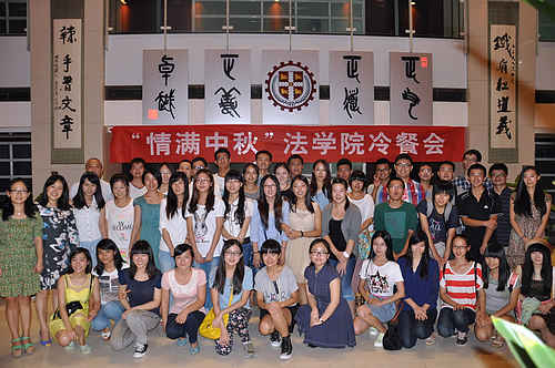 2013年9月18日19:30,乐动在线平台迎新生“情满中秋”冷餐会在主楼十楼大厅举行。乐动在线平台总支书记彭沪生、院长助理吉兰湘和学生工作专职委员张乃钟老师及学院2013级全体本科、硕士、博士研究生新生及首届“法学复合型卓越班”的学生参加了冷餐会。冷餐会由2013级硕士新生于飞洋和黄睦慧同学主持。