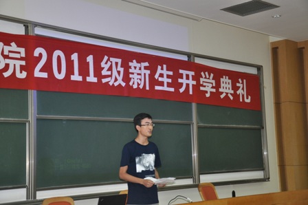 单文华院长因当天上午参加校学术委员会会议,会前,他特意叮嘱并通过主持人向学院2001级新生致以新学期问候和最美好的祝愿。