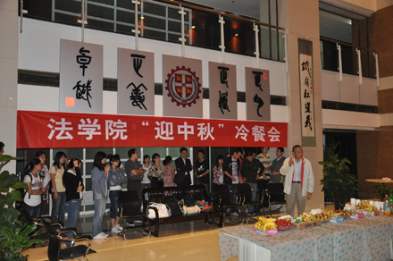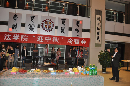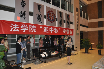 2011年9月8日19:30,乐动在线平台 “迎中秋”冷餐会在主楼十楼大厅举行。乐动在线平台院长单文华、书记彭沪生、院长助理吉兰湘、刘桥教授和学生工作专职委员张乃钟老师及乐动在线平台2011级全体本科生,硕士、博士研究生新生参加了冷餐会。冷餐会由2011级法律硕士新生马沙和马骏飞同学主持。