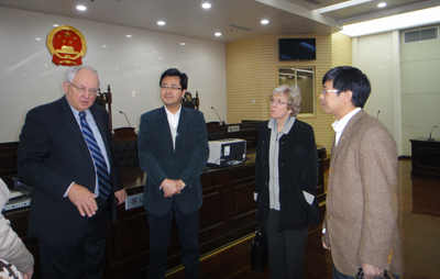 3月25日,安德森大法官及其夫人在我校乐动在线平台副院长王保民带领下参观了陕西省高级人民法院,省高院田平利副院长出面迎接,并亲自带领安德森大法官参观了省高院气势宏伟的办公大楼,包括民事、刑事审判庭、集团诉讼审判大厅、审判委员会合议室以及法院图书馆。之后,安德森大法官与省高院田院长和各刑事审判庭庭长法官们进行了座谈,就双方感兴趣的刑事诉讼程序中“诉辩交易”等问题展开深入探讨。乐动在线平台外事秘书华雨婷参加了座谈会。