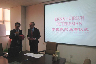 应我院院长单文华教授邀请,世界国际经济法权威学者、GATT/WTO前法律总顾问(有GATT/WTO“活字典”之誉)、欧洲大学学院(European University Institute)教授E.U. Petersmann日前来我院访问讲学,并受聘客座教授。