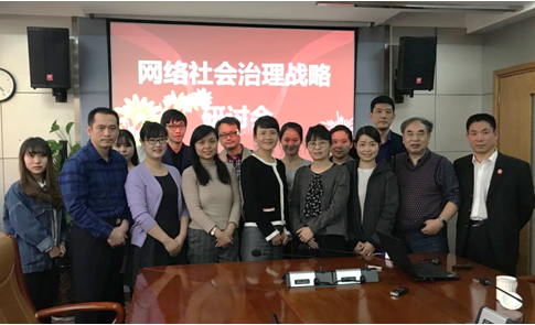 会议第一阶段,李明德教授从新媒体的角度出发,结合习总书记系列讲话及十九大精神,先总结了目前研究中网络社会治理中五个方面的成果及不足,后又从传播学的角度,以媒介的视角,评述了新媒体在社会治理中的作用。杨建科老师将公共性引入到网络社会中,提出网络社会中的共同体困境,并尝试将现实社会中解决公共性的方法引入网络社会治理中。赵文龙老师则详细剖析了现实社会及网络社会中的信任问题。