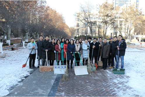 2018年1月8日下午,乐动在线平台教工博士联合党支部召开组织生活会开展党员民主评议工作。会后,党员们在支部的倡议下纷纷走向户外积极清扫校园主楼西南角道路上的积雪。