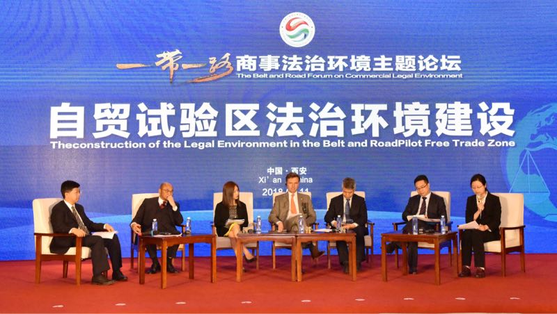 5月11日,由中国贸促会、陕西省人民政府主办,我院与中国贸促会法律事务部、陕西省贸促会等单位承办的“一带一路”商事法治环境主题论坛在陕西西安召开。陕西省委常委、政法委书记杜航伟,中国贸促会副会长卢鹏起,英国贸易和出口促进部部长罗娜· 费尔海德,新加坡律政部副常任秘书韩国元等中外嘉宾出席开幕式并发表了热情洋溢的致辞。我校校长助理、乐动在线平台院长单文华教授就陕西自贸区打造“一带一路”法律服务与法治创新示范区与中外来宾进行了交流。