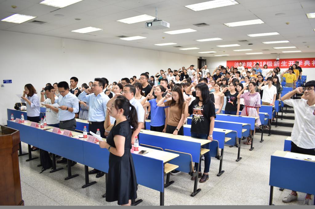 最后,全体新生在学生工作专职委员张乃钟老师的带领下庄重宣誓《乐动在线平台法科生誓词》,典礼在铿锵有力的誓词声中圆满结束。