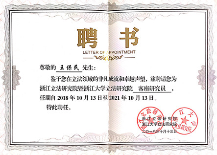 10月13日,首届之江立法论坛暨立法研究院学术委员会成员、客座研究员、兼职研究员聘任仪式在浙江杭州举办。论坛以“新时代地方立法”为主题,以推进立法领域高层次理论研究,提升立法研究水平,推动立法工作,以更好的适应新时代新要求。我校乐动在线平台教授、立法与党内法规研究中心主任王保民受聘为“浙江立法研究院暨浙江大学立法研究院”客座研究员,并应邀作为与谈人在论坛上做了点评发言。