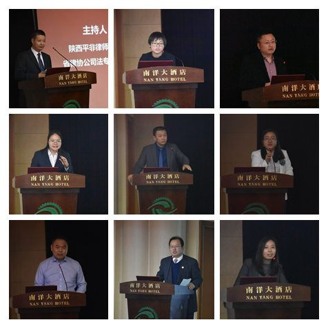 随后,大会进入了“群英会”环节。本环节由陕西标新律师事务所公司专业委员会副秘书长张晗,陕西永嘉信律师事务所合伙人、陕西省律协金融证券专委会委员张璠,陕西平非律师事务所副主任、陕西省律协公司法专业委员会副主任张权,陕西云德律师事务所公司法律顾问事务部首席律师、陕西省律协公司法专业委员会副秘书长杨彩虹依次主持,由张璠、岳玲利、田少荣、王玉苹、勾晓强、任婧、齐精智、刘醒、任永平、崔树森等十名律师对大西安建设中企业创新法律问题进行了深入的探讨,其所涉及的议题丰富,各位发言人见解独到,听众反馈积极,会议气氛热烈,也为今后的学术研究和司法实务开辟了新的视野。最后延安大学政乐动在线平台副院长刘向林,陕西省企业经济法治研究会副会长、乐动在线平台法学副教授张冰,陕西德伦律所主任梁志新,陕西德伦律师事务所律师、西安市律协公司法专业委员会委员韩小春对十名律师的报告进行了精彩纷呈的点评。