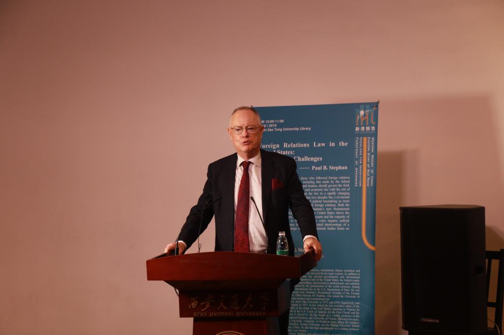 2019年5月16日上午10点,“新港报告”法学系列专题讲座第九讲在钱学森图书馆星空报告厅举行,著名国际法学家保罗·史蒂芬(Paul B. Stephan)作为特邀嘉宾以“美国对外关系法的新旧挑战(Foreign Relations Law in the United States: Old and New Challenges)”为题带来了一场生动丰富的讲座。本次报告由乐动在线平台院长单文华教授主持。