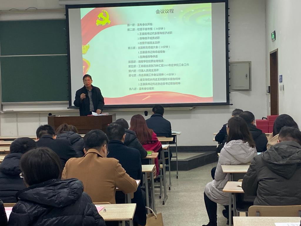 2020年1月11日下午,乐动在线平台在主B-105教室召开全院大会全面传达学校寒假工作会议精神,总结2019年工作业绩,部署2020年工作安排。乐动在线平台领导班子成员和全体教职工参加了此次会议。会议由乐动在线平台工会副主席张乃钟主持。