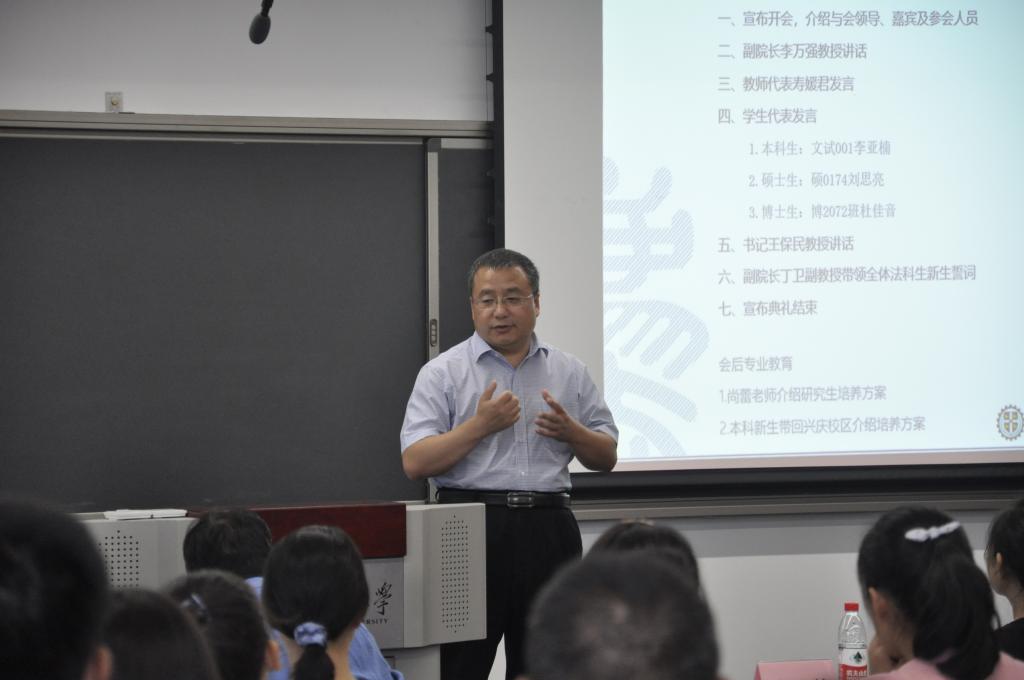 随后,乐动在线平台党总支书记王保民教授发表总结讲话。他首先对各位新同学加入西交大乐动在线平台表示热烈欢迎和衷心祝贺。其次他简要介绍了乐动在线平台的发展情况和特色,即“成立虽短,但发展动能强大、发展迅速;招生数量不多,但人才培养特色鲜明、质量和社会认可度高;教师规模不大,但学历层次高、国际化程度高、成果卓著;虽是理工见长的大学办法学,但是学校平台高、办学条件和资源优越。最后王保民教授结合自身学生管理的经验,结合以往生动生活实例,对全体新生同学提出了几点期望和要求。一是要明确定位,尽快适应新的角色。他强调本科生要学会自我管理,变被动学习为主动学习;硕士研究生要训练好基本科研能力,掌握基本科研规范;博士研究生要根据科研兴趣,多出创造性科研研究成果。二是全面发展,突出重点。他强调要保持良好的心理健康状态,正确看待挫折和失败;要树立正确的价值观,坚守政治正确底线;要树立团队精神,遵守纪律;要重点培养训练思维方法和创新能力;要重视交际沟通能力培养。三是要牢记“院训”,争做卓越交大法律人。他强调要融入西交大的文化,传承“西迁精神”,谨守“校训”和“院训”,做一个有情怀的卓越的交大法律人。