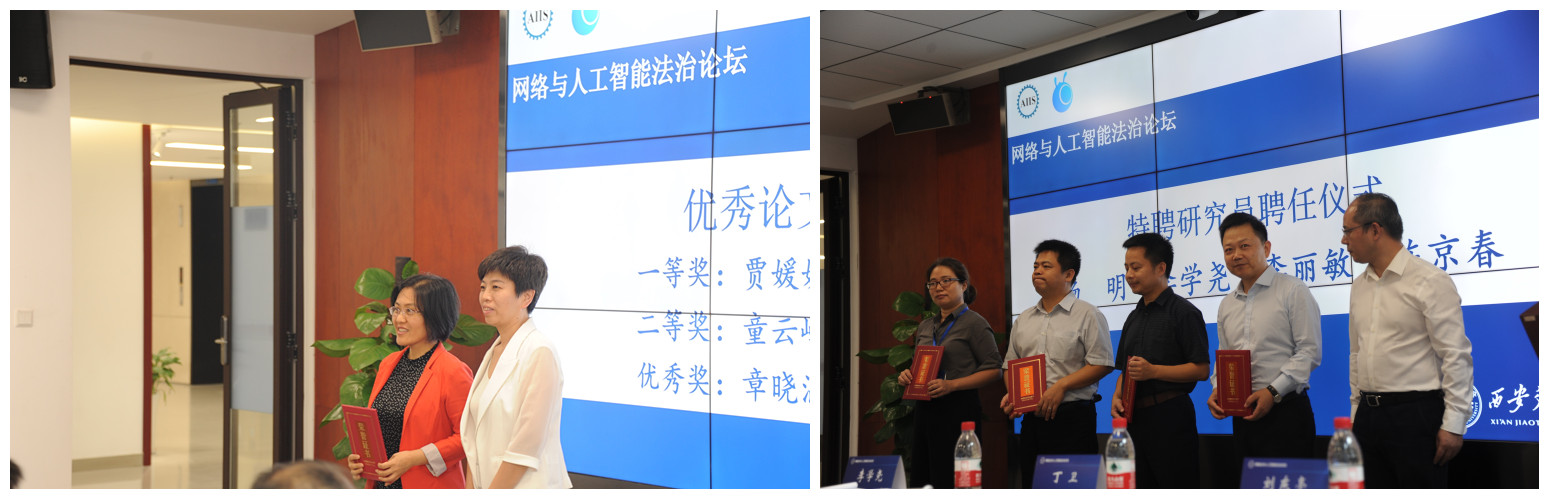 在此次论坛上,乐动在线平台人工智能与信息安全法律研究中心聘请杨明教授、李学尧教授、李丽敏教授、陈京春教授为特聘研究员并为其颁发了聘书。乐动在线平台学报(社会科学版)张丛副主编为评选出的优秀论文作者代表进行了颁奖。