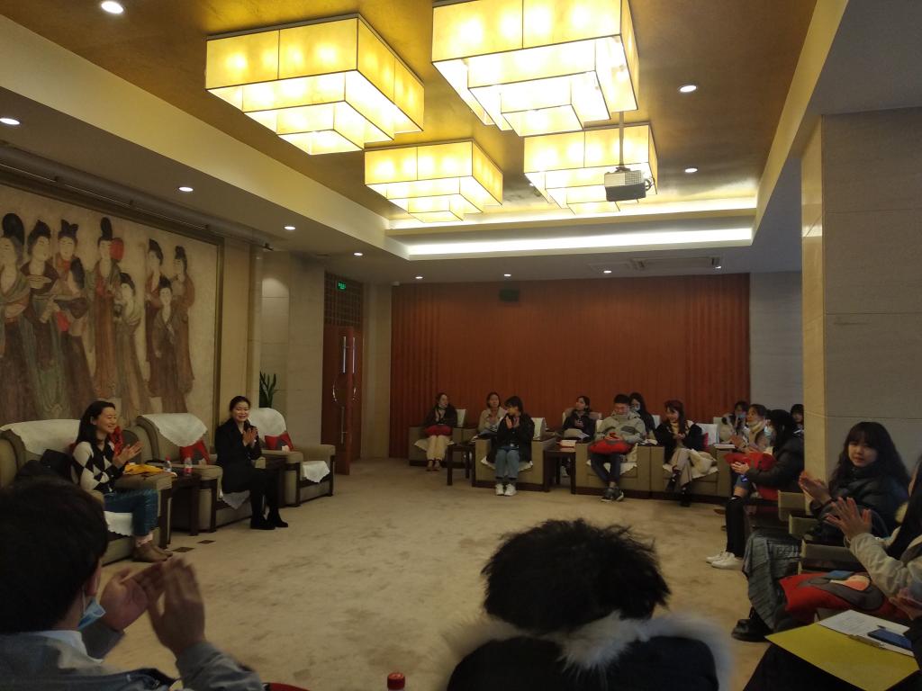 实践课的第二个环节是“互动交流”:乐动在线平台师生与高静怡老师进行了更深一步的学习座谈交流。刘丽娜副教授询问了博物馆文创活动以及实现教育功能的途径,高静怡老师列举说明了博物馆是根据系列设置课程,分别有国家级系列的展览、根据24节气设置的展览、有传统节日课程以及一些比如“彩陶中华”类型的临时展览。刘丽娜副教授还补充说明了博物馆是公益性质的,还以成都和上海为例给同学们讲解了博物馆对于研学活动的管理模式。