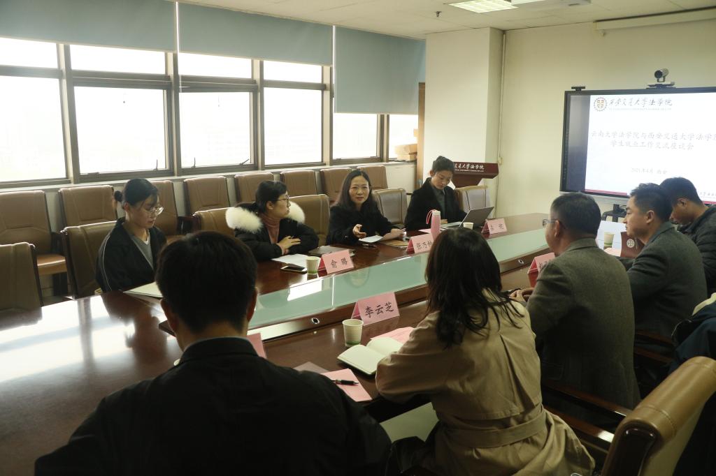 随后,双方针对法学毕业生就业工作普遍存在的重难点问题进行了交流。刘蔓琦书记介绍了云南大学乐动在线平台学生就业工作的困难点,他指出生源特点、家庭经济情况、用人单位隐形性别歧视、学生就业观念传统等情况制约了就业工作的开展,导致学生就业率偏低。他对交大乐动在线平台的就业工作表示赞扬,指出我院就业工作呈现系统化、提前化、精细化等特点,许多就业帮扶举措值得学习。张乃钟指出,我院非常重视学生就业工作,工作中形成了本科生和研究生就业工作“一体化”管理服务机制,在学院领导下以学生工作专职委员为主干,教学副院长、兼职辅导员、研究生导师和科研团队以及本科生班主任、学业导师为补充的就业工作队伍。在就业信息发布、就业经验交流、就业指导帮扶、实习平台搭建、校友资源等方面合理配置,精准发力,努力确保每一名毕业生顺利就业。特别是2020年乐动在线平台研究生毕业生在基层选调生,世界五百强企业就业等重要指标超额完成学校目标任务,取得建院13年以来历史最好成绩。学院就业助理丛珊也从毕业生角度对我校选调生考试温馨培训以及学院“管家式”的就业精准指导和帮扶等方面分享了自己的心得和感受。
