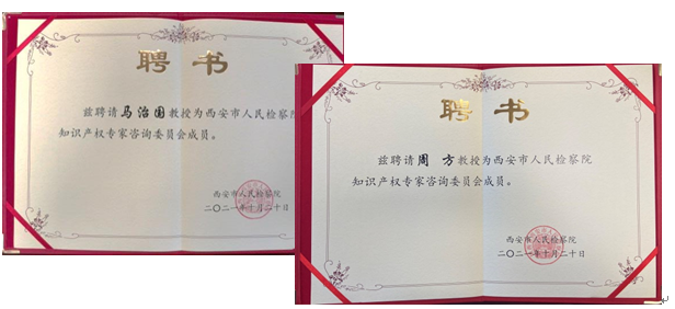 图13 西安市人民检察院知识产权专家咨询委员会成员聘书