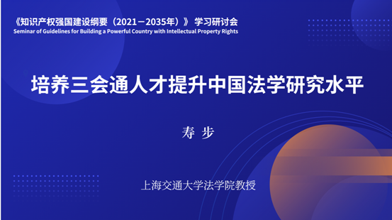在第二模块“乐动在线平台知识产权学科建设论证”环节,宋晓亭教授、寿步教授分别作了“知识产权学科建设之我见”“培养三会通人才提升中国法学研究水平”的报告,李晓鸣副教授主持,与谈人邱洪华教授、焦和平副教授作了精彩发言。
