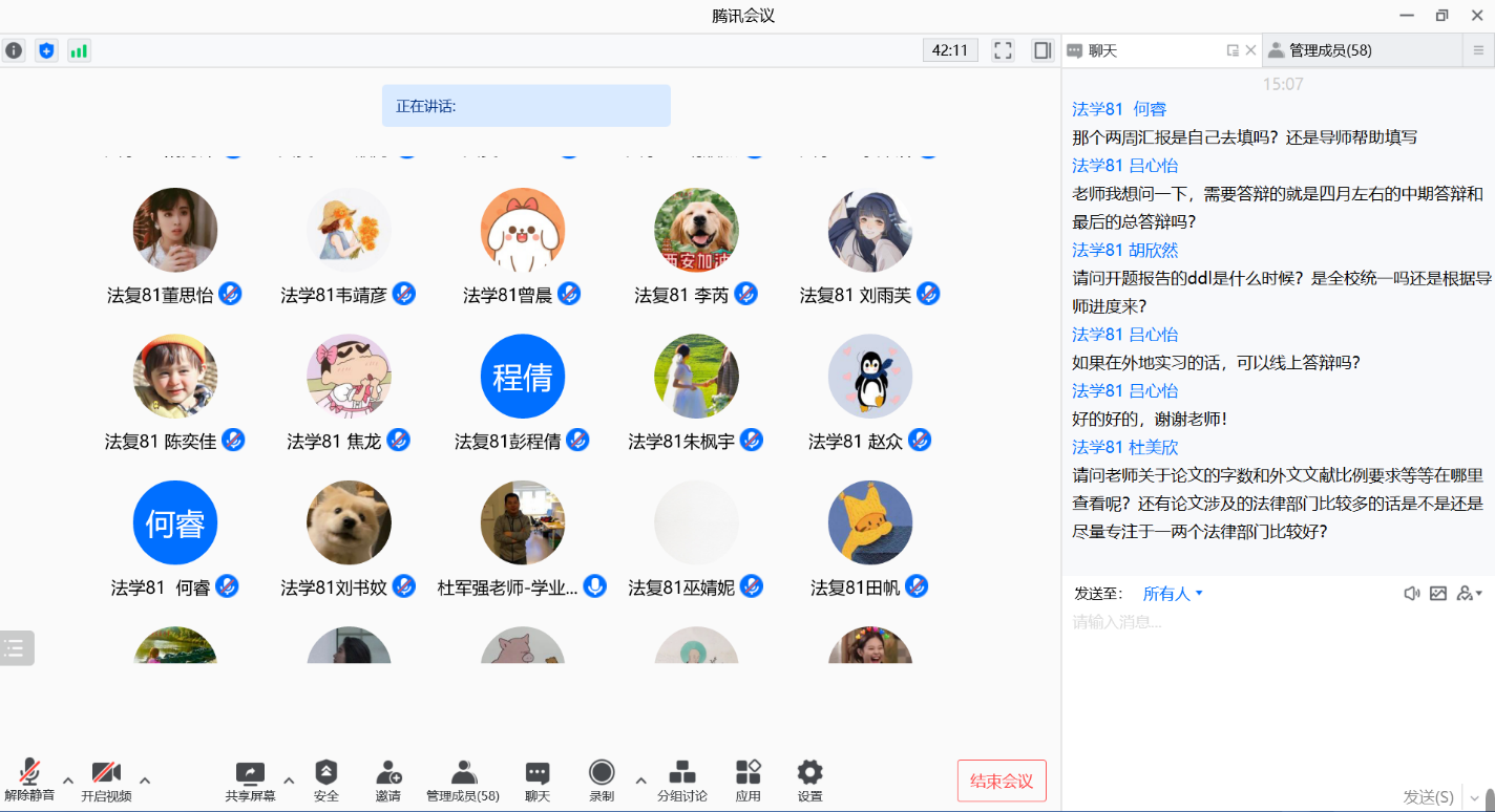 为了更好地加强师生之间的联系沟通,了解同学们的学习生活情况,学院各年级学业导师和班主任积极开展线上班会,围绕同学们备考、论文写作和生活等情况进行深入交流。