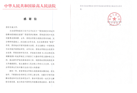 近日,最高人民法院立案庭致函我校,就我院乐动在线平台单文华教授团队参与最高人民法院工作表示感谢。