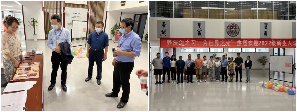 随后,单院长、王书记、李院长等一行乘坐公交专线从创新港南区返回中区,来到“学院联合迎新接待点”,在迎新报到现场欢迎远道而来的新生同学,并叮嘱志愿者和同学们做好疫情防护。