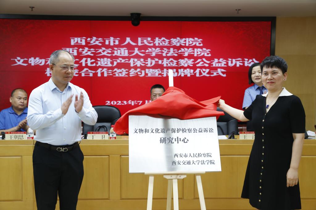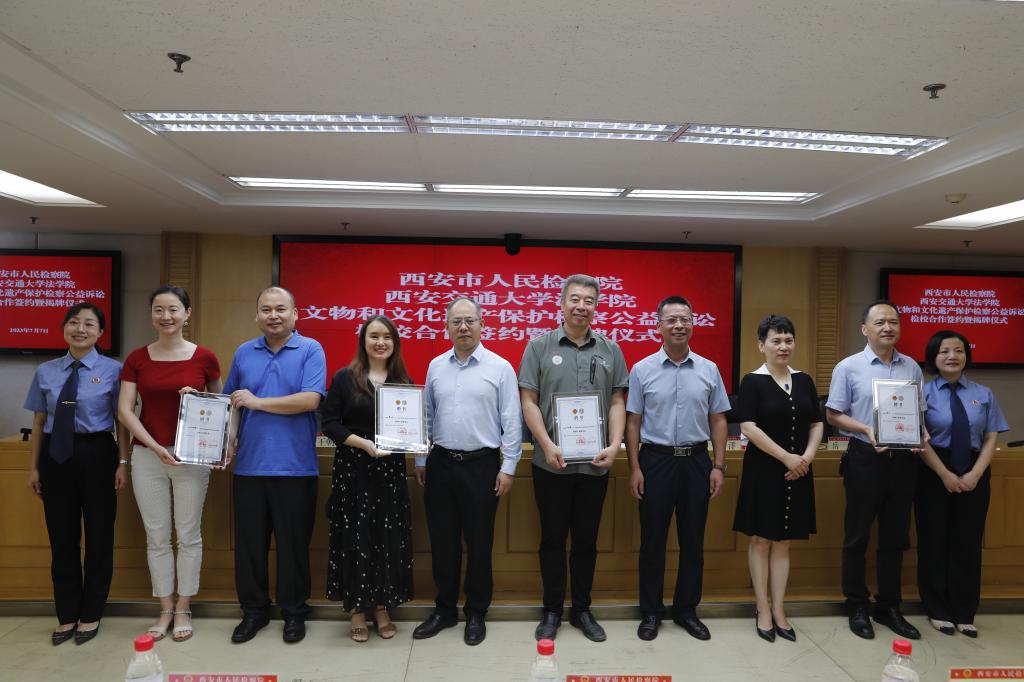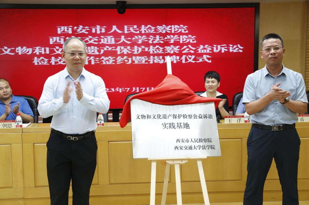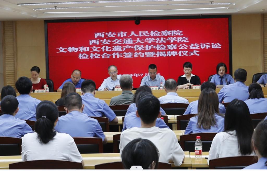 7月7日,西安市人民检察院、乐动在线平台乐动在线平台共同举办“文物和文化遗产保护检察公益诉讼”检校合作签约暨揭牌仪式。陕西省人民检察院第八检察部主任王洋、西安市人民检察院副检察长韩柏超等领导,西安市人民检察院第八检察部全体干警、各区县院分管副检察长、公益诉讼部门负责人及实务研究员、乐动在线平台乐动在线平台副院长丁卫、乐动在线平台乐动在线平台的王朝恩研究员、刘丽娜副教授、特聘专家研究员代表以及西交大乐动在线平台首批11名实习生出席仪式。