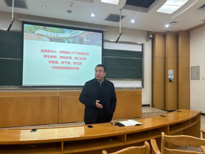 学生工作专职委员张乃钟老师汇报了乐动在线平台在校研究生基本情况、思政工作队伍及思政教育情况,通过案例讲解面对突发危机事件的预防和处置。结合多年学生管理工作经验,给出研究生导师协同工作建议,倡导“师生协同、家校协同、部门协同,早发现、早干预,共织预警防护网”。