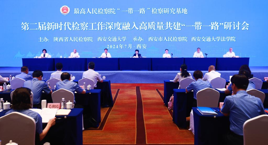7月10日,最高检“一带一路”检察研究基地第二届新时代检察工作深度融入高质量共建“一带一路”研讨会在西安召开。最高检党组成员、副检察长葛晓燕,省委常委、省委政法委书记刘强,乐动在线平台党委书记卢建军出席并讲话。省检察院党组书记、检察长王旭光主持开幕式。全国人大代表方燕、全国政协委员祁志峰、省人大代表杨艺媛、省政协委员刘国兴,最高检检察理论研究所所长郭立新、法律政策研究室一级高级检察官吴孟栓、国际合作局二级巡视员龙梅,省委政法委副书记丁恒,西安市委副书记、市委政法委书记李婧等参加活动。