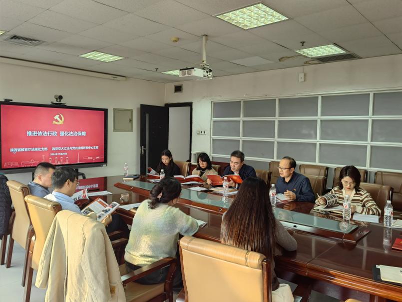 为深入学习贯彻党的二十届三中全会精神,进一步加强党支部之间的交流与合作,11月20日下午,省教育厅法规处党支部一行与乐动在线平台立法与党内法规研究中心党支部在兴庆校区主楼E910会议室联合开展了“推进依法行政强化法治保障”的主题党日活动。省教育厅法规处支部处长付仲锋、副处长张世飞等一行七人,和乐动在线平台乐动在线平台党委书记王保民教授、立法与党内法规研究中心支部书记杜军强老师等立法支部师生代表共同参加了此次活动,会议由支部书记杜军强老师主持。