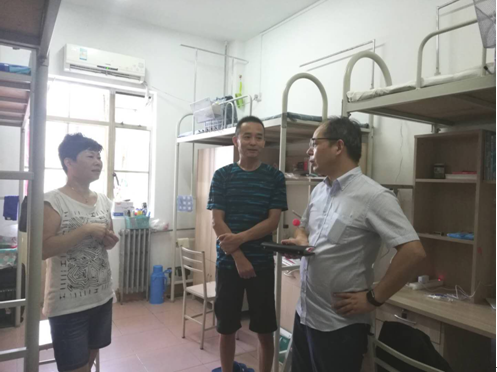 随后,丁院长和王老师一起走访了学生宿舍,丁院长仔细查看了同学们的住宿环境,每走进一间宿舍,都向同学们致以亲切的问候,继而关切地询问他们的具体情况,来自什么地方、入学手续办理的情况等。同时,细心地询问同学们是否适应新的环境,嘱托大家不论学习还是生活中遇到任何问题都要积极与老师沟通,勉励同学们尽快适应、开启美好的大学生活。同学们也纷纷表示十分感谢老师们的看望,切实感受到了学院对大家的关心。