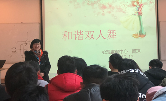 2018年12月12日晚上七点,化工学院与乐动在线平台在化工学院106会议室开展了以“树立正确恋爱观”为主题的心理健康讲座活动。本次讲座由心理咨询中心的闫琼老师主讲,乐动在线平台与化工学院的一年级研究生参与了此次讲座活动。