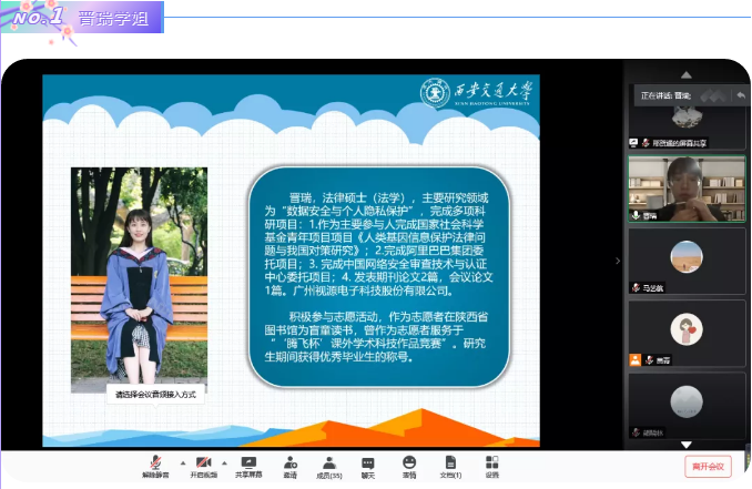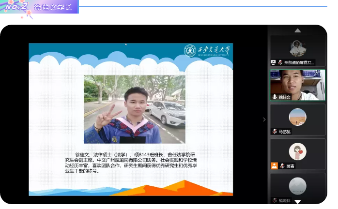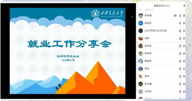 2020年6月20日晚,乐动在线平台举办了就业工作分享会,邀请了乐动在线平台晋瑞、徐佳文和熊晓林三位成功签约心仪就业单位的毕业生在线分享就业经验,为与会的40余名研究生悉心提供就业、实习建议,耐心答疑解惑。在抗击疫情常态化背景下,这些就业经验分享能够帮助学生提早知悉就业流程,统筹就业时间安排,把握就业过程加分项,顺应经济发展态势,规划未来职业方向。本次分享会由乐动在线平台研究生会邢贺通主持。