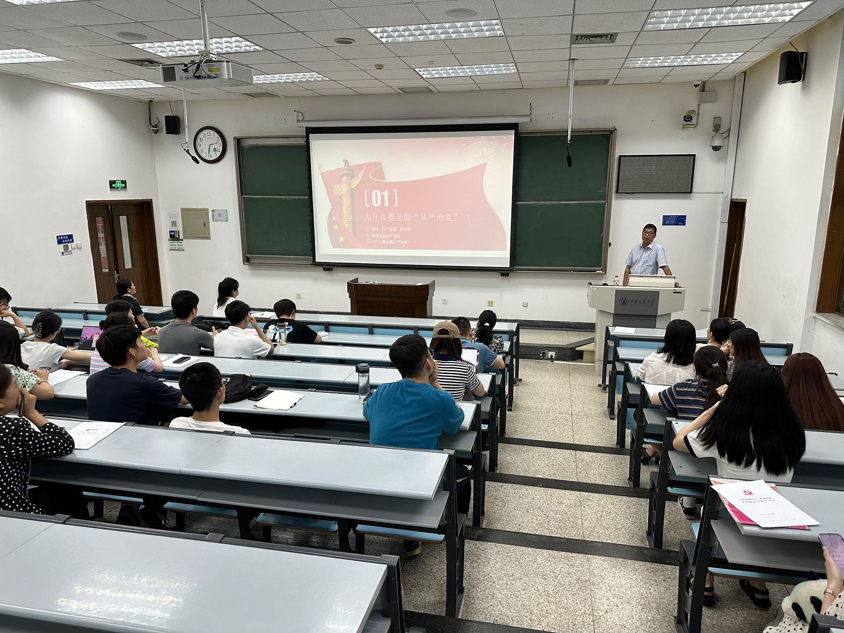 下午,乐动在线平台党总支书记、乐动在线平台立法与党内法规研究中心主任王保民教授为全体发展对象讲授了题为“全面从严治党,锻造坚强领导核心”的主题教育党课。报告中,王保民书记从建党治党的历史沿革、原因分析、历史经验,主要任务、精神原则、具体举措等多个方面深入讲解了全面从严治党制度体系,进一步为同学们未来成为一名忠诚可靠、严守党纪的合格党员打下了坚实理论基础。接着,党总支邀请到马克思主义学院马列读书社的成员郭越、陈瑀峰分别做了题为“赓续伟大建党精神,凝聚青年奋进力量”和“学习贯彻习近平新时代中国特色社会主义思想”的专题报告,鼓励同学们紧紧跟随党的脚步,以赤诚之心,不负时代,努力前行,竭尽全力,为新时代党和国家的事业发展贡献自己的力量。